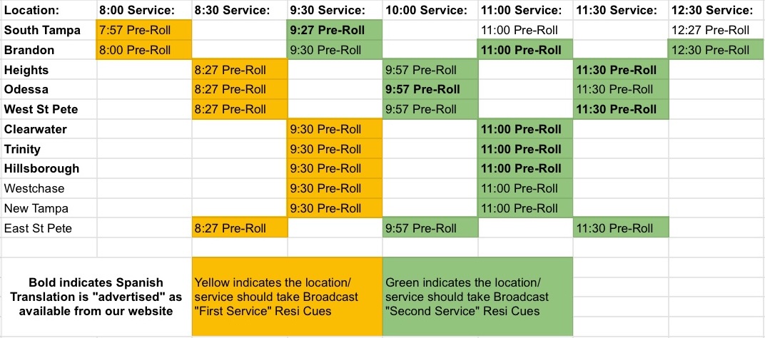 Service PreRoll Times